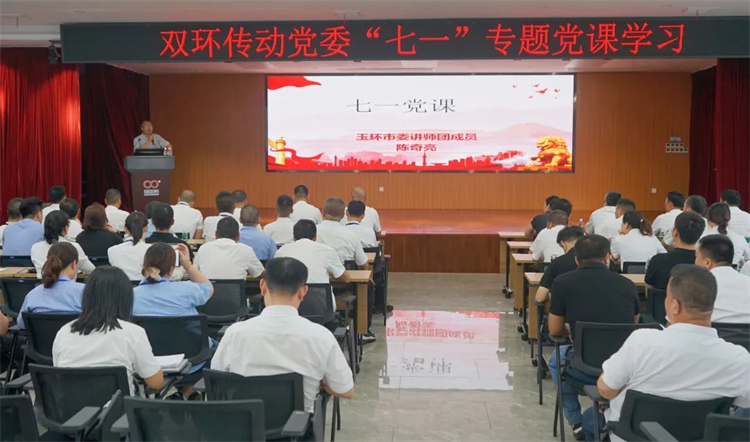 為慶祝中國(guó)共產(chǎn)黨建黨102周年,6月30日下午,雙環(huán)傳動(dòng)黨委特邀玉環(huán)市委講師團(tuán)成員陳奇亮來(lái)司講授“七一”專(zhuān)題黨課,通過(guò)黨課教育,引導(dǎo)全體黨員堅(jiān)定信心,積極進(jìn)取,真抓實(shí)干。會(huì)議由雙環(huán)傳動(dòng)黨委辦主任金治強(qiáng)主持,雙環(huán)傳動(dòng)黨委委員董美珠,支部書(shū)記孫建海、徐南亮、吳思良以及黨員、流動(dòng)黨員共70余人參加了黨課學(xué)習(xí)。