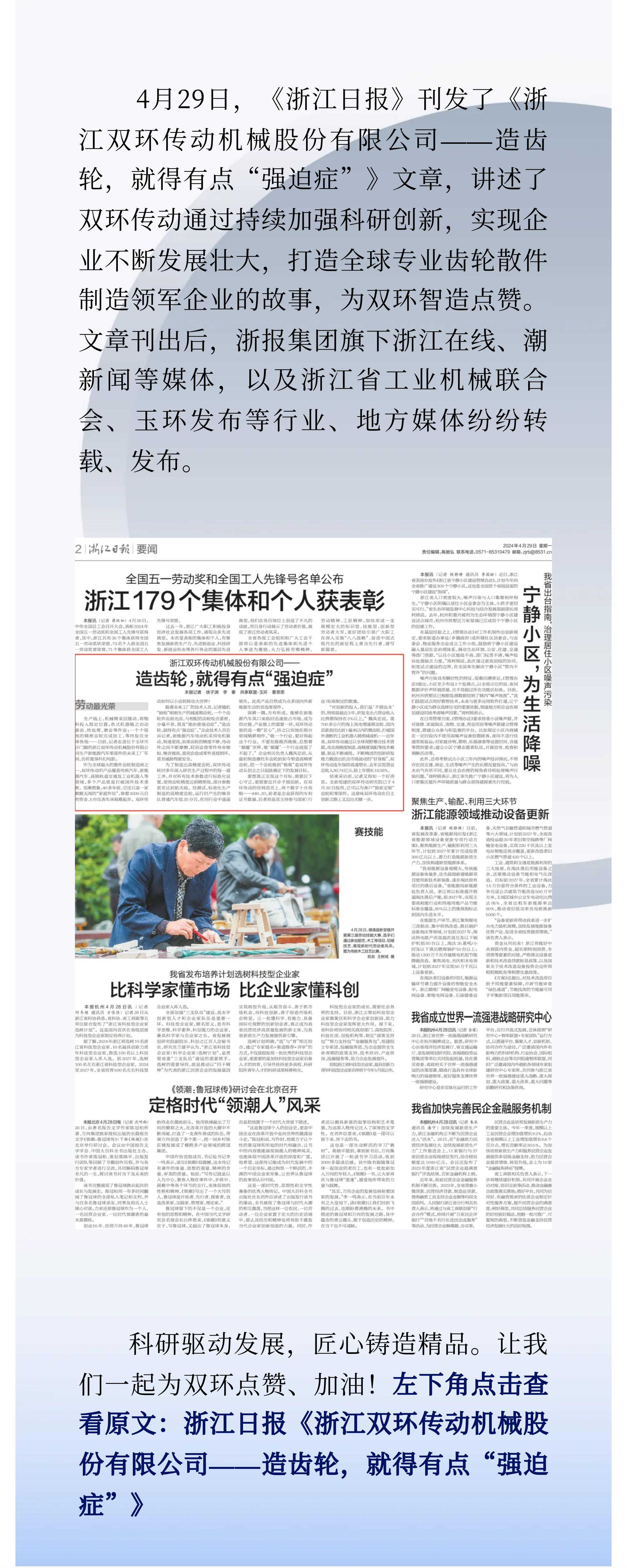 雙環(huán)傳動登上《浙江日報》等主流媒體